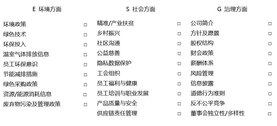 ESG報(bào)告包括的內(nèi)容: