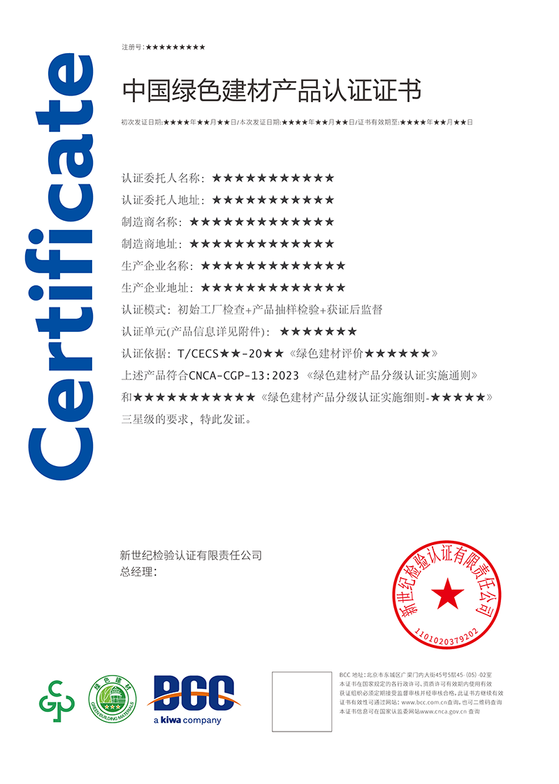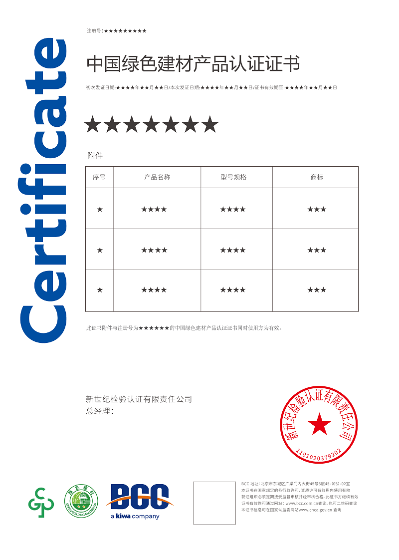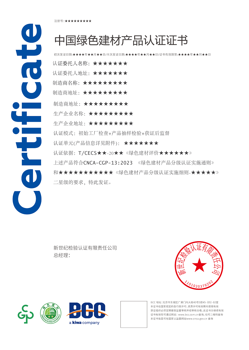 綠色建材產(chǎn)品分級認(rèn)證按照中國工程建設(shè)標(biāo)準(zhǔn)化協(xié)會發(fā)布的《綠色建材評價標(biāo)準(zhǔn)的要求》,將認(rèn)證結(jié)果由低至高分為一星級、二星級和三星級。