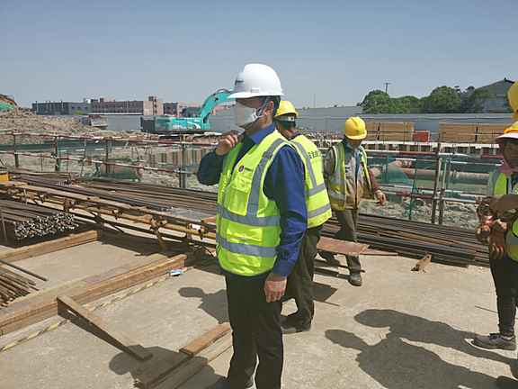 馬健老師在上海生特瑞建設(shè)有限公司施工現(xiàn)場進行審核。